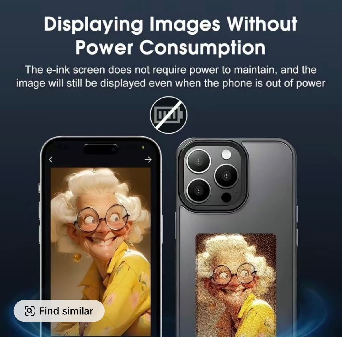 Elevate your iPhone 16 Pro Max with this innovative phone case featuring a unique E Ink screen and NFC functionality, combining convenience with a playful design.